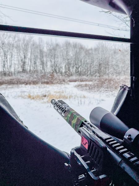 For this season, I used a 450 Bushmaster upper from Bear Creek Arsenal. This is a side-charging model with a 16-inch barrel. I paired it with an Aero Precision lower that I built using extra parts. Overall, it turned out to be a nice package.