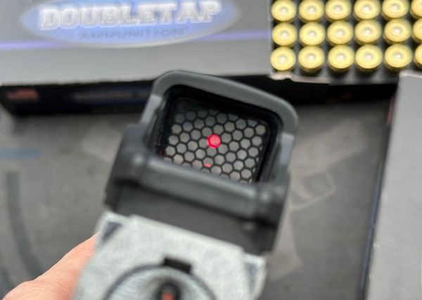 The vision issues led me to try out an old idea in a new way. The OEG or Occluded Eye Gunsight is a device that predates modern red dot optics and goes back to the 1970s and the Cold War. In a nutshell, an OEG sight provides an easy to perceive aiming dot, but it is not a scope or optic per se. The dominant eye perceives the aiming dot and the non-dominant eye provides the target information. Your brain takes it all in and assembles the complete target picture. The US Army Special Forces experimented with the OEG on old school carrying handle M16s and had great success; day and night.