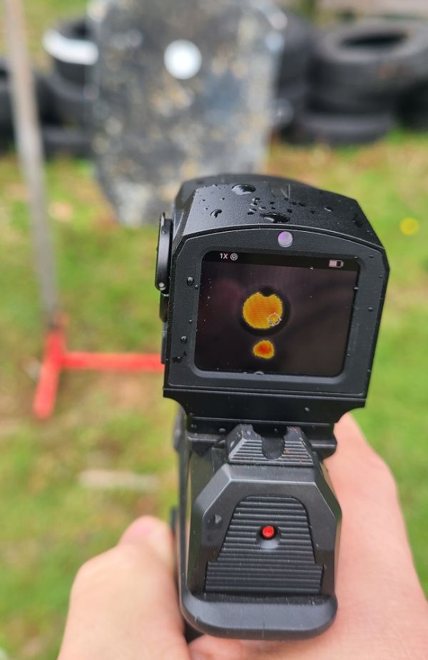 The 60 Hz refresh rate makes movement buttery smooth. Tracking and transitioning between targets feels natural, with none of the stutter you see on slower thermals. The 384×288 sensor delivers noticeably crisper detail than 256-res models. Residual heat from rounds passing through the Infinite Defense self-healing target showed great edge definition, and target identification is simply easier.