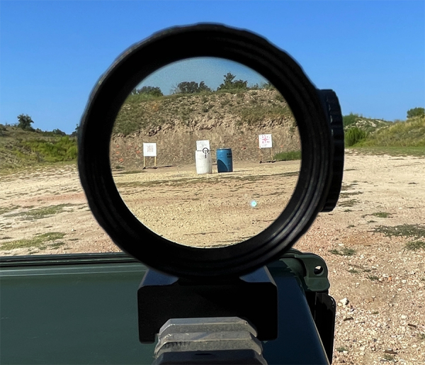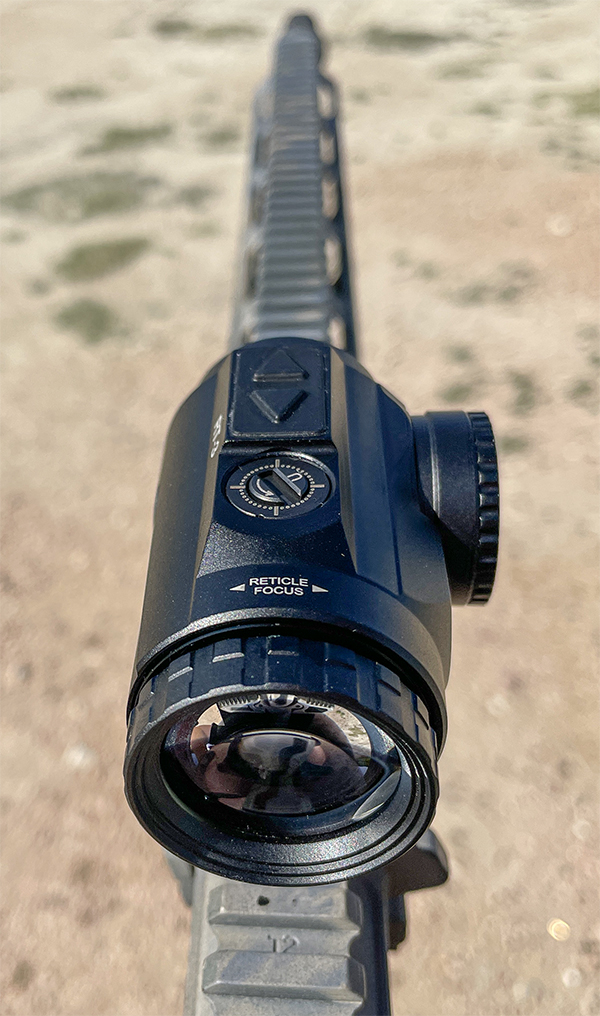 The optic's edge to edge clarity is excellent and the reticle is large to the eye than it appears to the camera in the image above.